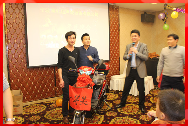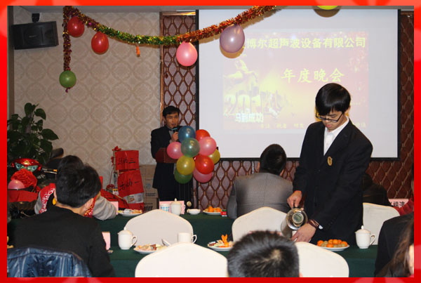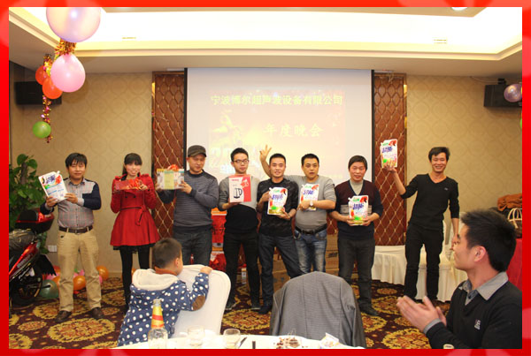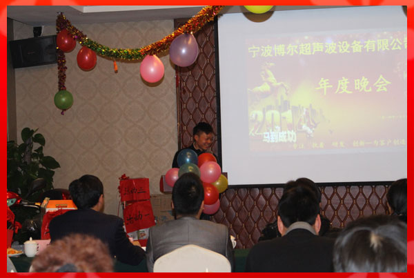 此次年會(huì)由公司行政部門(mén)精心策劃,聘請(qǐng)了專(zhuān)業(yè)的主持和音控團(tuán)隊(duì)。公司員工精心布置了會(huì)場(chǎng)、安排各游戲互動(dòng)環(huán)節(jié),財(cái)務(wù)部購(gòu)置了豐盛的獎(jiǎng)品;使得寧波博爾超聲波設(shè)備有限公司2013年年度晚會(huì)舉辦的成功、歡樂(lè)、祥和、圓滿(mǎn)!